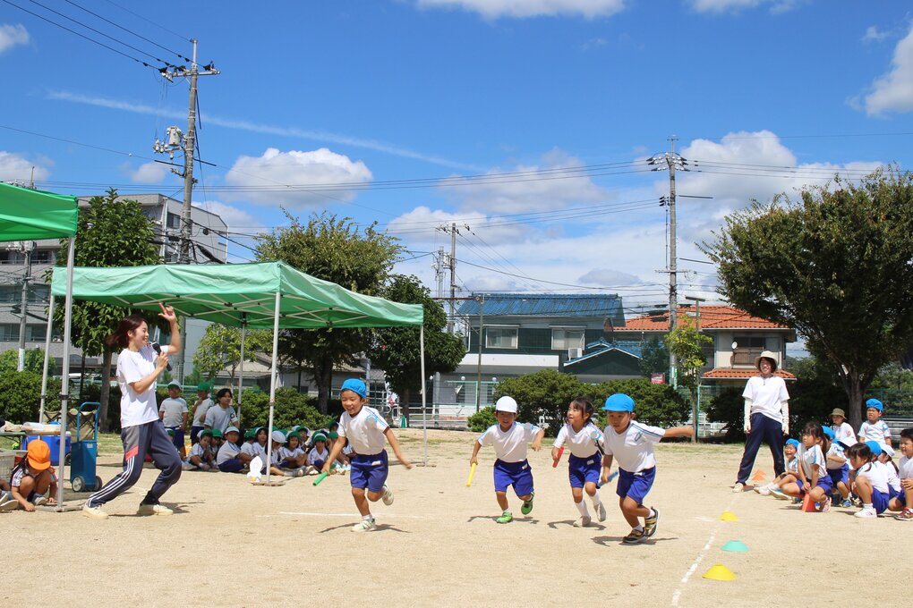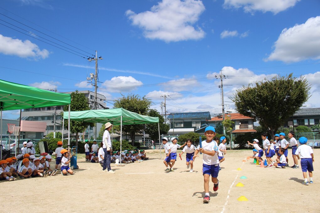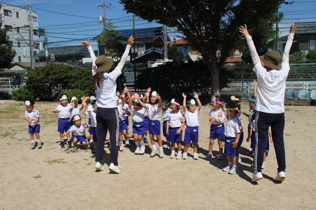 5歳児クラスは何でも本気で取り組むカッコいいまんまる園のリーダー的存在。はじめて公園でダンスをしましたが、皆で考えた振り付けや動きを合わせる楽しさや面白さを感じながらピカピカの笑顔で表現を楽しみました。最後のリレーでは、「本気でがんばる!」を全員の目標にしていた子どもたち。チーム内で順番を決めたり、最後まで全力で走ってバトンを繋いだり、全力で応援したり…と、リレーは最後まで大盛り上がりでした。