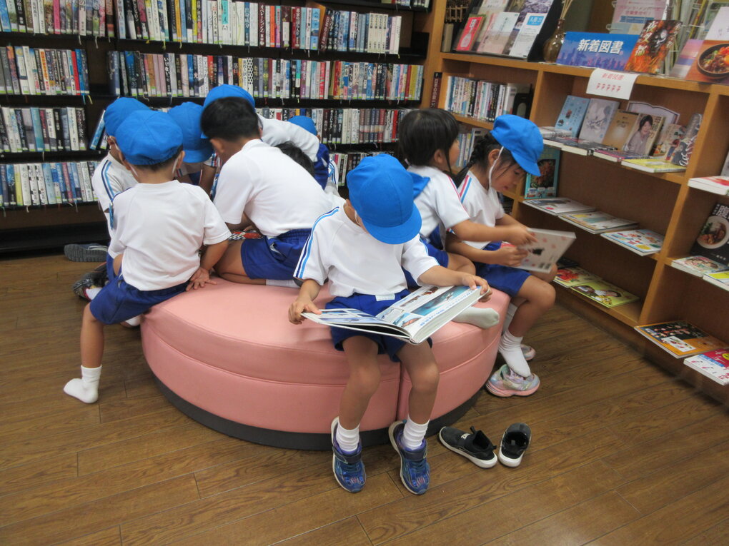 その後は、いつものように読んだ本や図鑑を元あった場所に返して、皆で図書館の一角に集まり、職員が絵本の読み聞かせをしました。