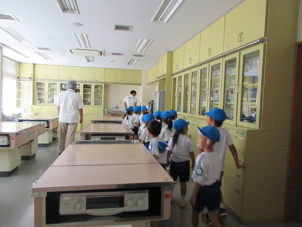 この日、5歳児が帰り支度をしていると、公民館の先生から「2階も見てみる?」とご提案いただき、館内見学をさせていただくことに…。調理室では「ここでお料理作るんだぁ~」「冷蔵庫や電子レンジもあるよ!」など、日頃中々見ることのない場所に興味津々の様子で、益々地域の公民館が大好きになった子ども達でした。公民館の先生方、いつも子ども達を温かく迎え入れていただき、ありがとうございます。