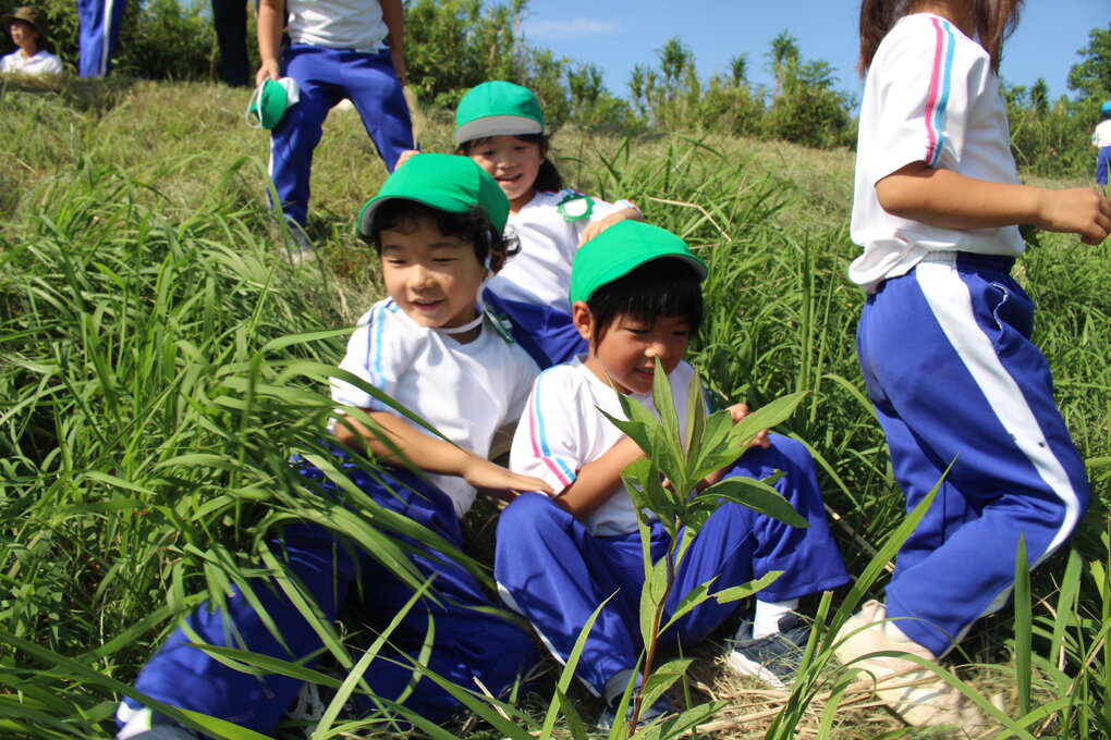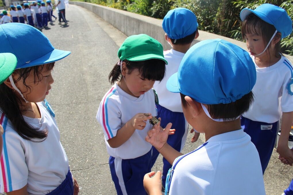 活動後も「もっと遊びたかったなぁ」「もう1回いきたい」などの声がどちらのクラスからも聞かれて、実りの秋に相応しい、身近な自然を用いた満足度の高い体験の機会になりました。これからも今回のように異年齢集団での自然体験を計画・実施し、子ども達の優しさや憧れの気持ち、センス・オブ・ワンダーの感性を豊かに育んでいきたいと思います。