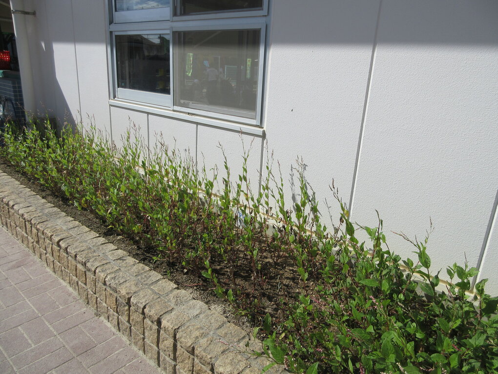 今回の生葉染めをずっと楽しみにしていた子ども達。まんまる園でも藍は少量ですが栽培しているので、ある程度植物としての『藍』のイメージは持っていたようです。園を出発して歩くこと10分…御南認定こども園に到着。4歳児は園外に出る機会も多いせいか、随分自分たちで気を付けて安全に道路を歩けるようになったように思います。