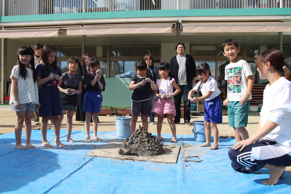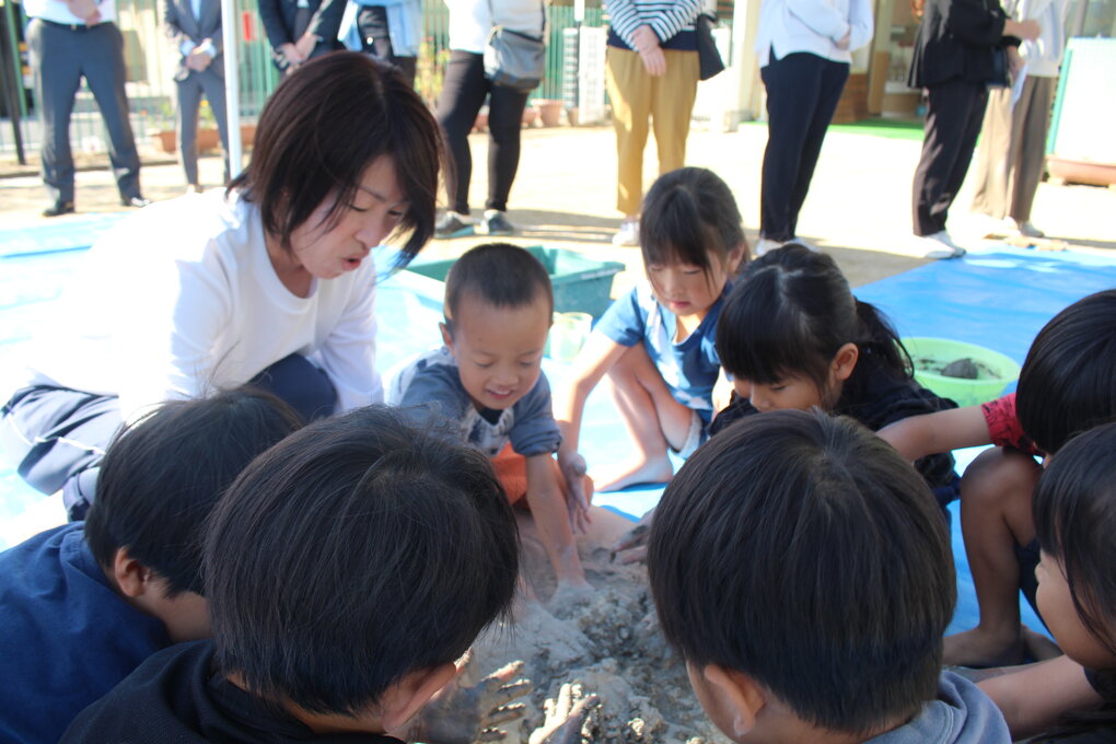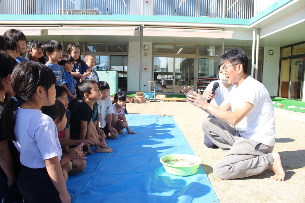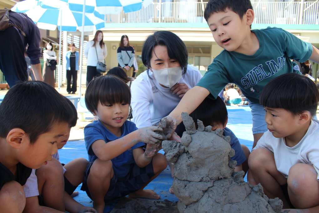 10月28日(火)、5歳児クラスの土粘土遊び参観を行いました。なお、今回も講師には県内在住の陶芸家 十河隆史先生(https://t-pottery.com/)をお迎えして実施しました。