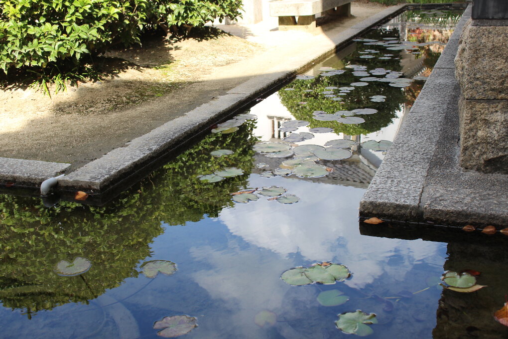 その後は大原美術館へ。実は岡山県は全国的にも美術館が多い県(全国第6位)で、中でも大原美術館は、日本初の西洋美術を中心とした私立美術館として有名です。地下道を歩いて美術館に到着すると、学芸員の先生方が出迎えてくださり、2グループに分かれて大原美術館が行っている幼児対象の『おさんぽプログラム』に参加しました。 はじめに、アトリウムという場所で学芸員の先生と『しずかに・さわらない・はしらない」の3つのお約束をして美術館見学ツアーがスタート!