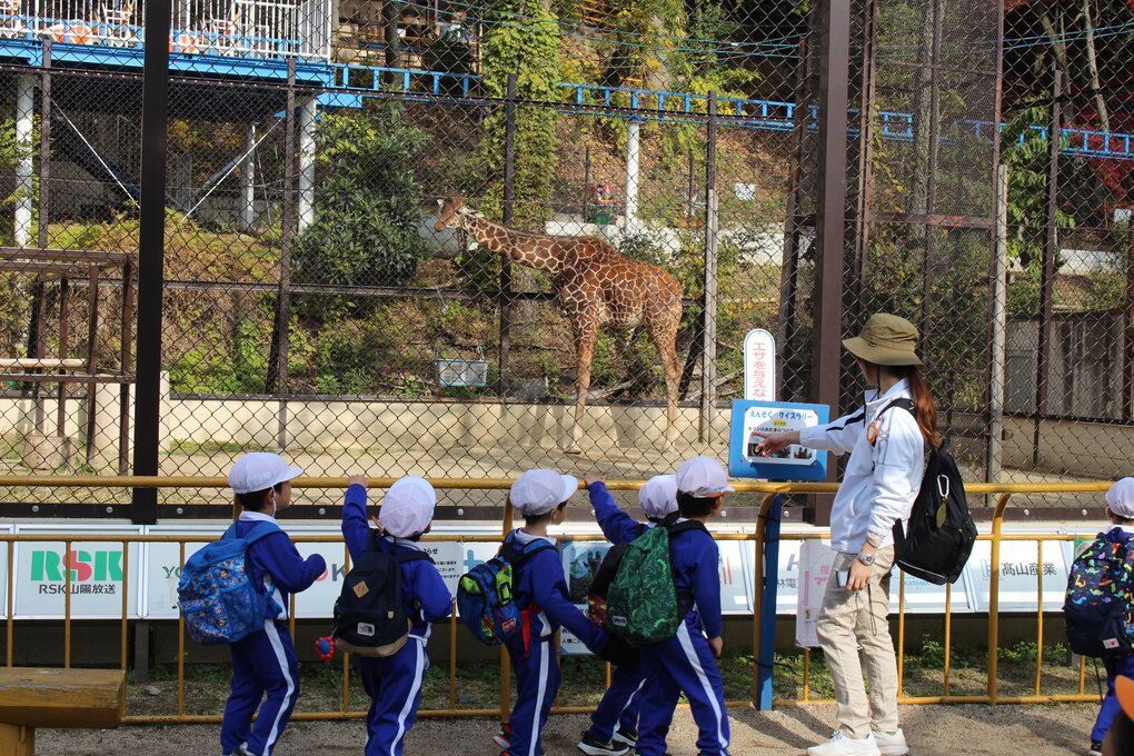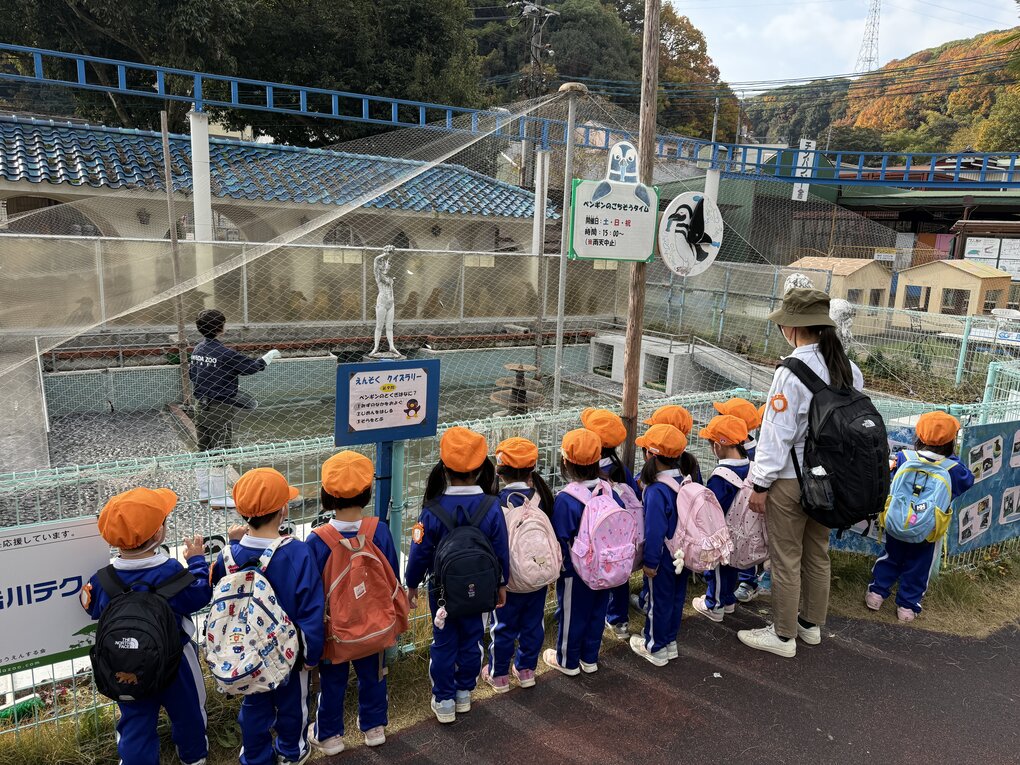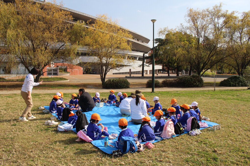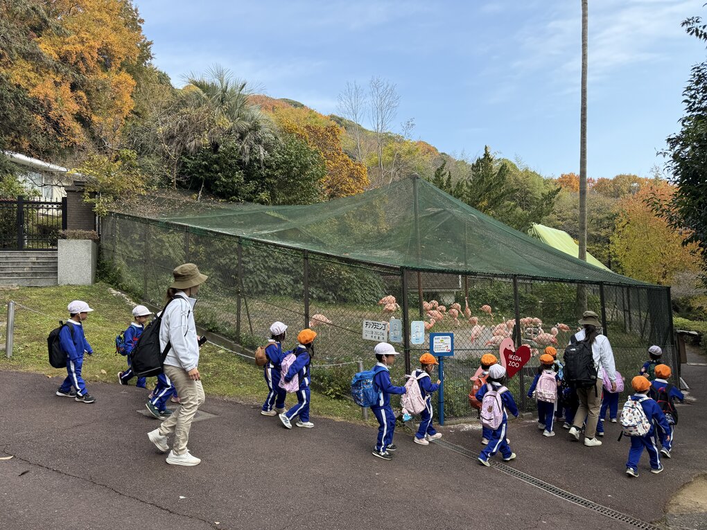 12月2日(火)、3歳児クラスが池田動物園と岡山県総合グラウンドに秋をみつけに遠足に行きました。当日は、12月だというのにポカポカのいいお天気、絶好の遠足日和です。