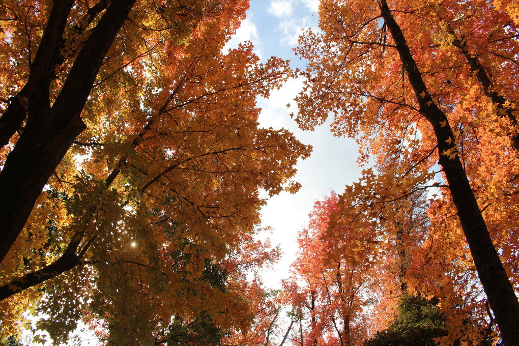 池田動物園を後にして次に向かったのはバスで5分程のところにある県総合グラウンド。この季節は外周をぐるりと囲むカエデの紅葉が本当に美しい公園です。