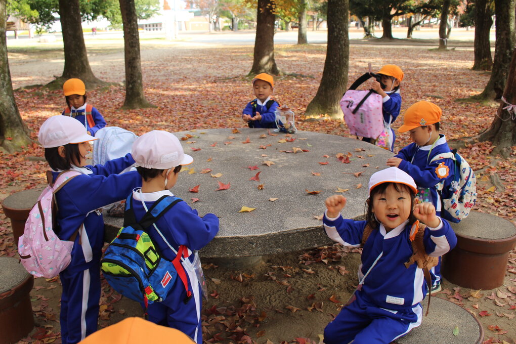 その後はバスに再び乗車して、遠足の思い出を振り返りながら園に帰りました。よほど遠足が楽しかったのか、もしくは体力があるのか、帰りのバスでは誰も寝なかった程に元気でしたが、その後はバタンキュー。秋のポカポカ陽気の中、穏やかで陽だまりのような遠足の一日となりました。