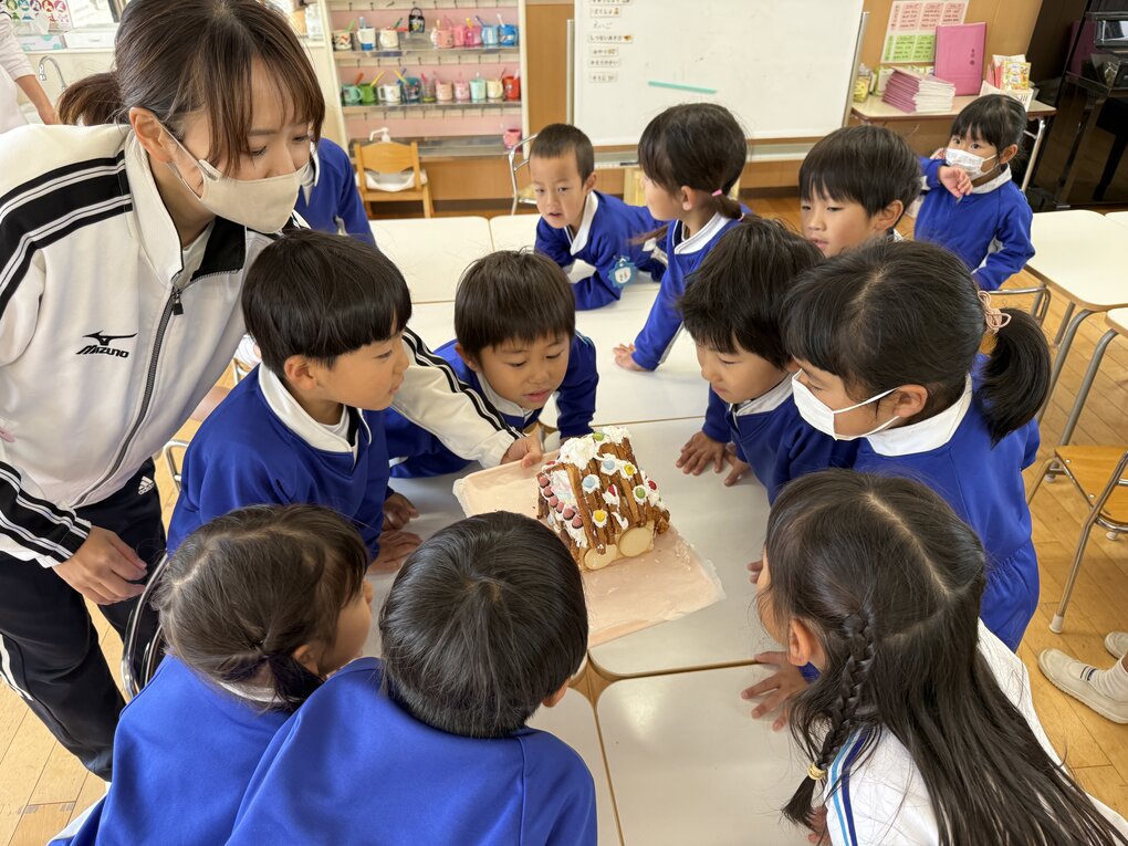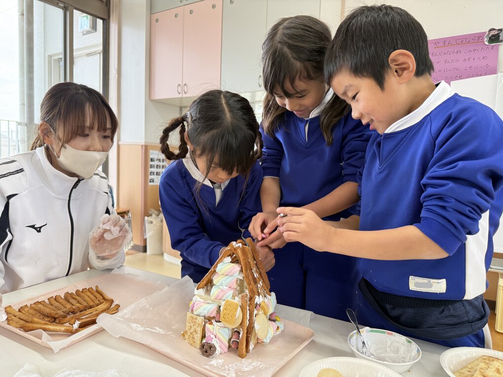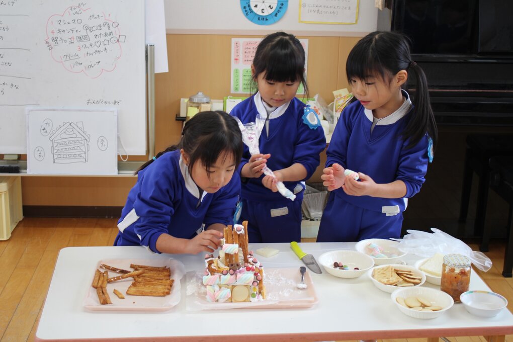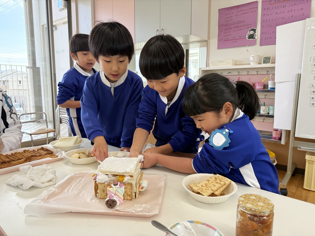 12月16日(火)、この日は5歳児クラスの子ども達が楽しみにしていた『お菓子の家づくり』を行いました。