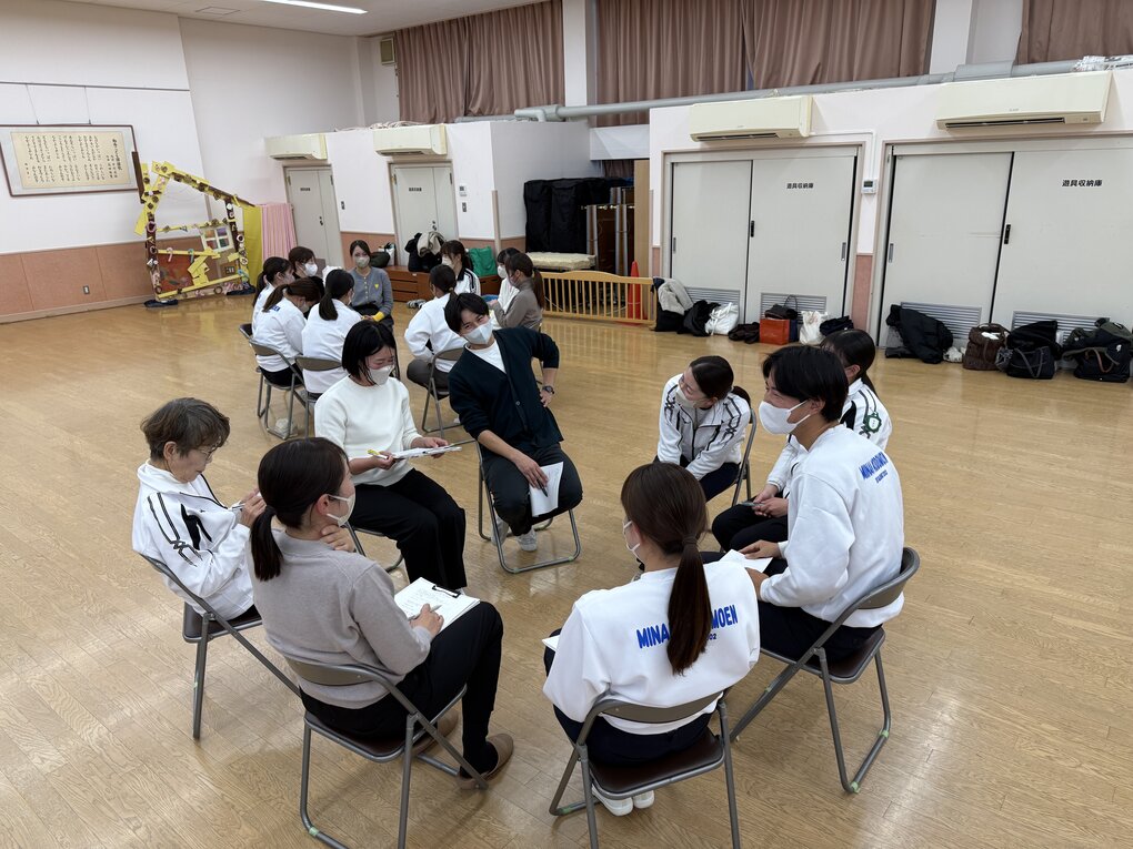 夕方からは姉妹園に移動して、法人が運営している3園の職員が一堂に介して法人全体会議(1年の締め括り)。各園の保育内容のまとめや総括、年齢毎の保育実践発表など、終始和気あいあいとした和やかな雰囲気の中で、園の枠を超えた意見交換や情報共有、親睦を深めることができました。