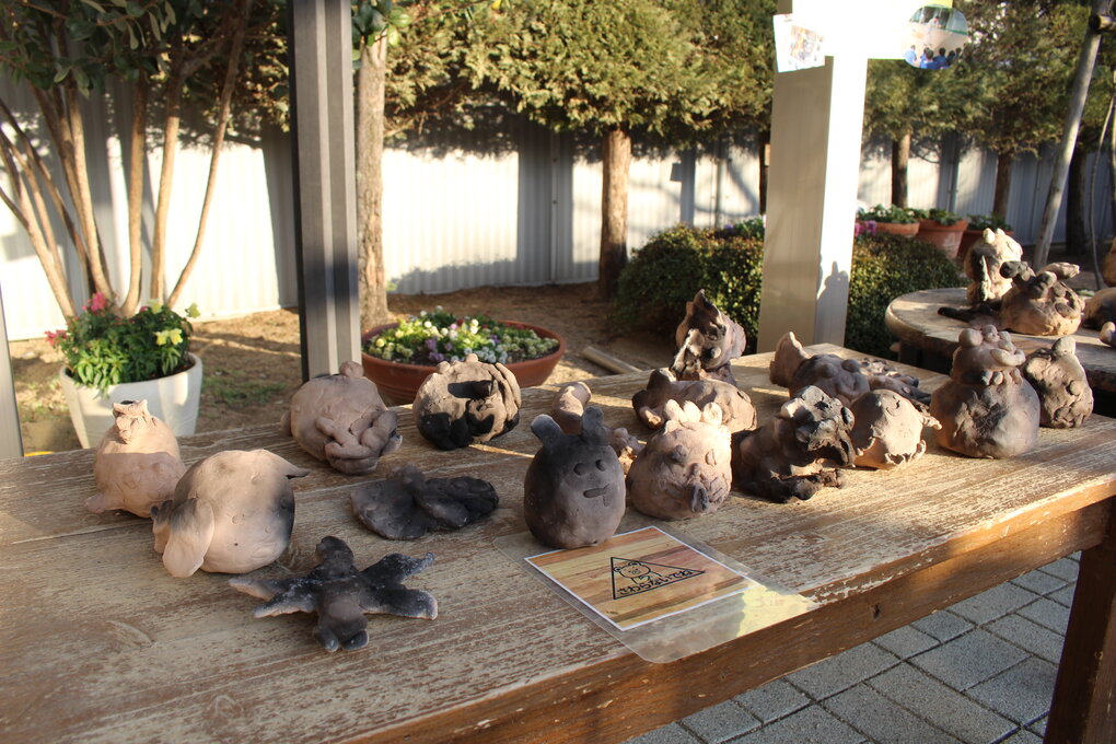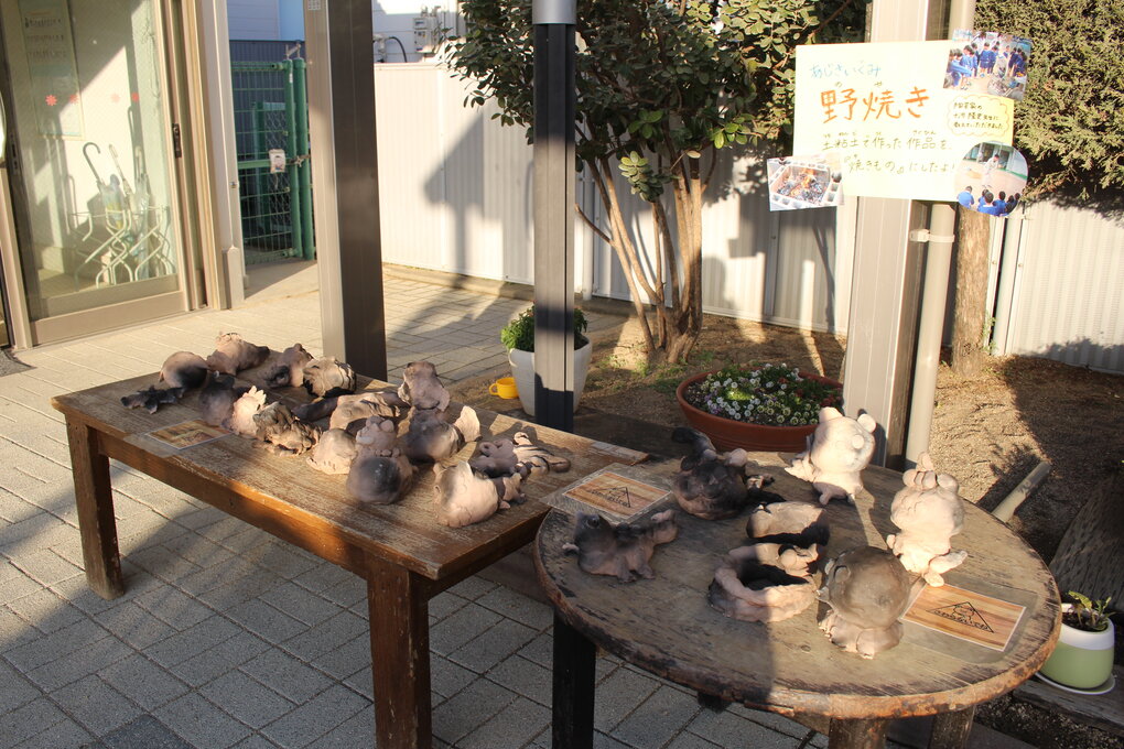 土粘土を使った卒業制作は毎活動後に行われる十河先生との振り返りと試行錯誤によって進化し、回数を重ねる度に子ども達が意欲的に参画し、表現を楽しむことができる活動に育ってきているように思います。土と炎、子ども達の手によって生まれた独創性溢れる作品は、卒業式で子ども達に記念品として贈呈する予定です。 十河隆史先生には、工房で素焼きしていただいたり、当日以外にも何度も園に足を運んでいただき、本当にありがとうございました。 次年度も引き続きよろしくお願いいたします。