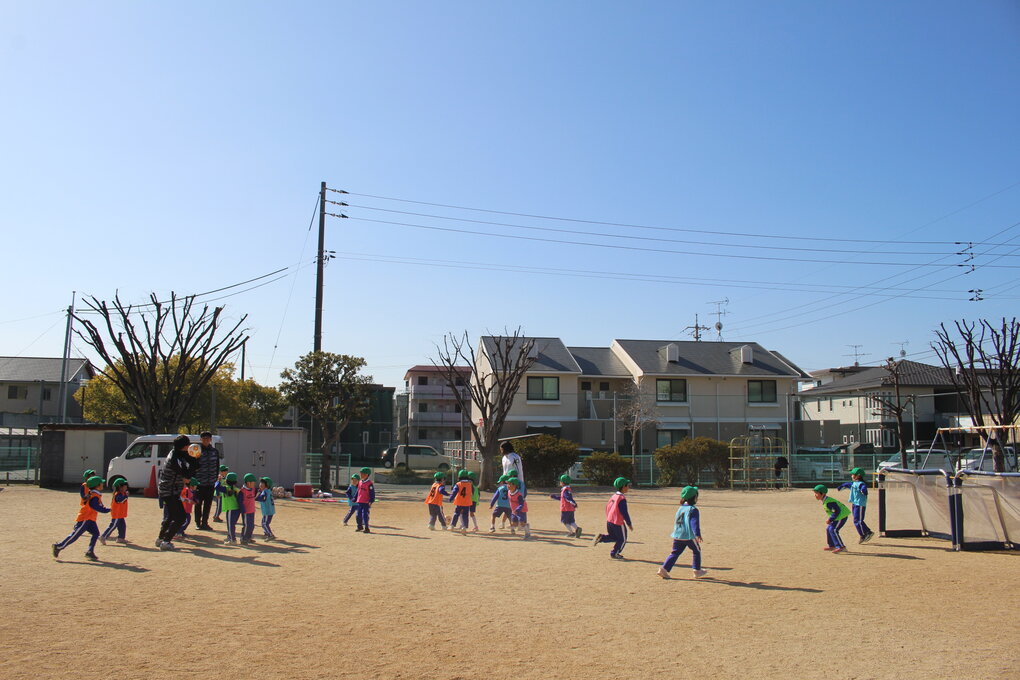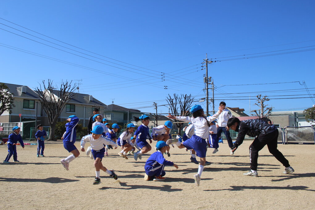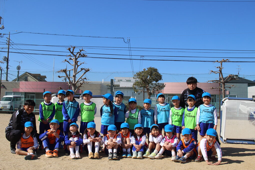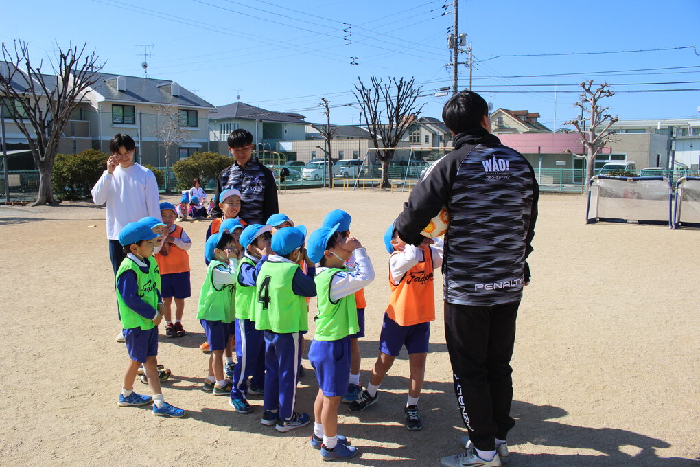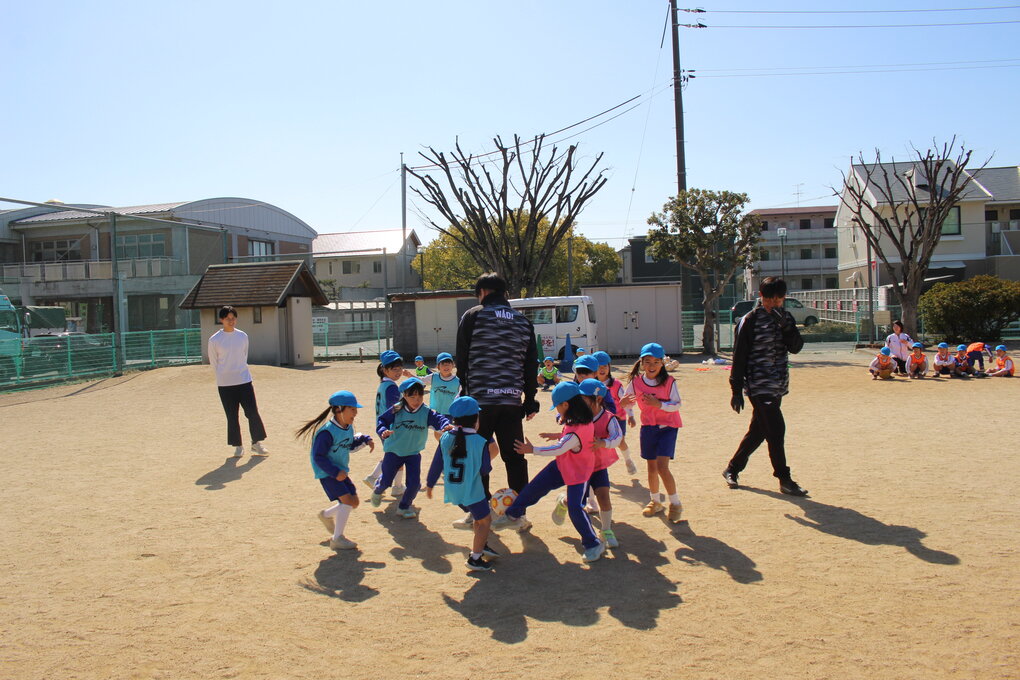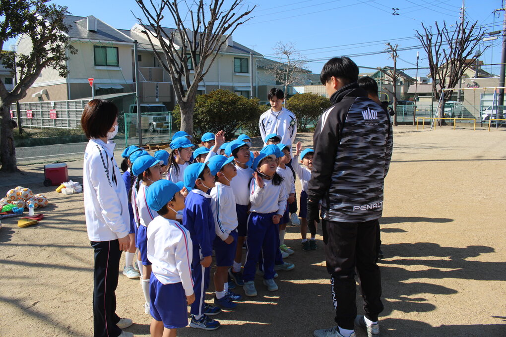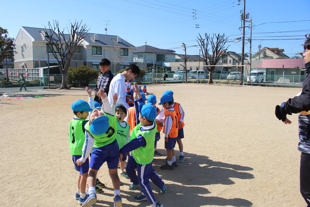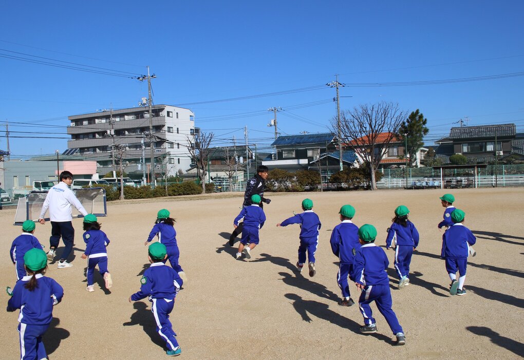 2月19日(木)、園近くの公園で、昨年見事J1に昇格したファジアーノ岡山のコーチに4・5歳児クラスを対象としたサッカースクール(1回目※全2回)を開催していただきました。(※晴れの国トップアスリート派遣事業)