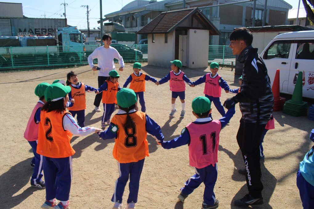 サッカースクールは3月にもう1回あります。子ども達がこの体験から何を得て、次にどう生かしていくのか楽しみです。ファジアーノ岡山の2名のコーチには2時間にわたり子ども達を本気でご指導いただき、ありがとうございました。次回もどうぞよろしくお願いいたします。