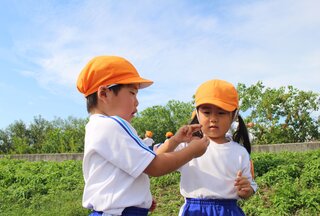 10月2日(木)先週に引き続き、3歳児クラスは秋晴れの笹ヶ瀬川で虫探し!子ども達はショウリョウバッタやシジミチョウを見つけては一生懸命に追いかけて捕まえたり、虫かごの中にバッタのご飯(草)を入れたりしました。男…