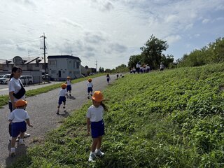 9月24日(水)、3歳児クラスは笹ヶ瀬川にお散歩に行きました。9月も下旬になって少しずつ涼しくなり、子ども達は園庭の桜の葉っぱの色が変わったことに気付いたり、赤いトンボを追いかけたり、風の気持ち良さを感じたりと、園内…