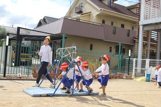 10月21日(火)、気持ちよく晴れた秋空の下で、1・2歳児クラスが園庭で多様な運動遊びを楽しんでいました。 1歳児クラスでも多くの子が2歳を迎えて、スキャモンの発育曲線からも、2~6歳は最も脳と神経系の発…